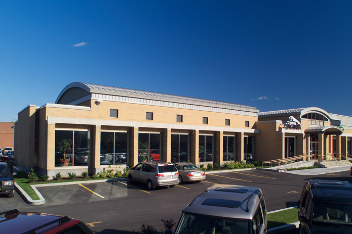 Transformation d'un salon funéraire existant en une salle d'exposition de véhicule haut de gamme, ainsi que des bureaux d'administration, services et aire de baie de lavage et 16 000 pi. ca. de garage souterrain. Le travail de construction souterrain nécessitait de retirer de 300'-0" de murs porteurs et des travaux de sous- oeuvre dans le sous-sol existant. La zone brute construite est de 45 000 pi. ca. |