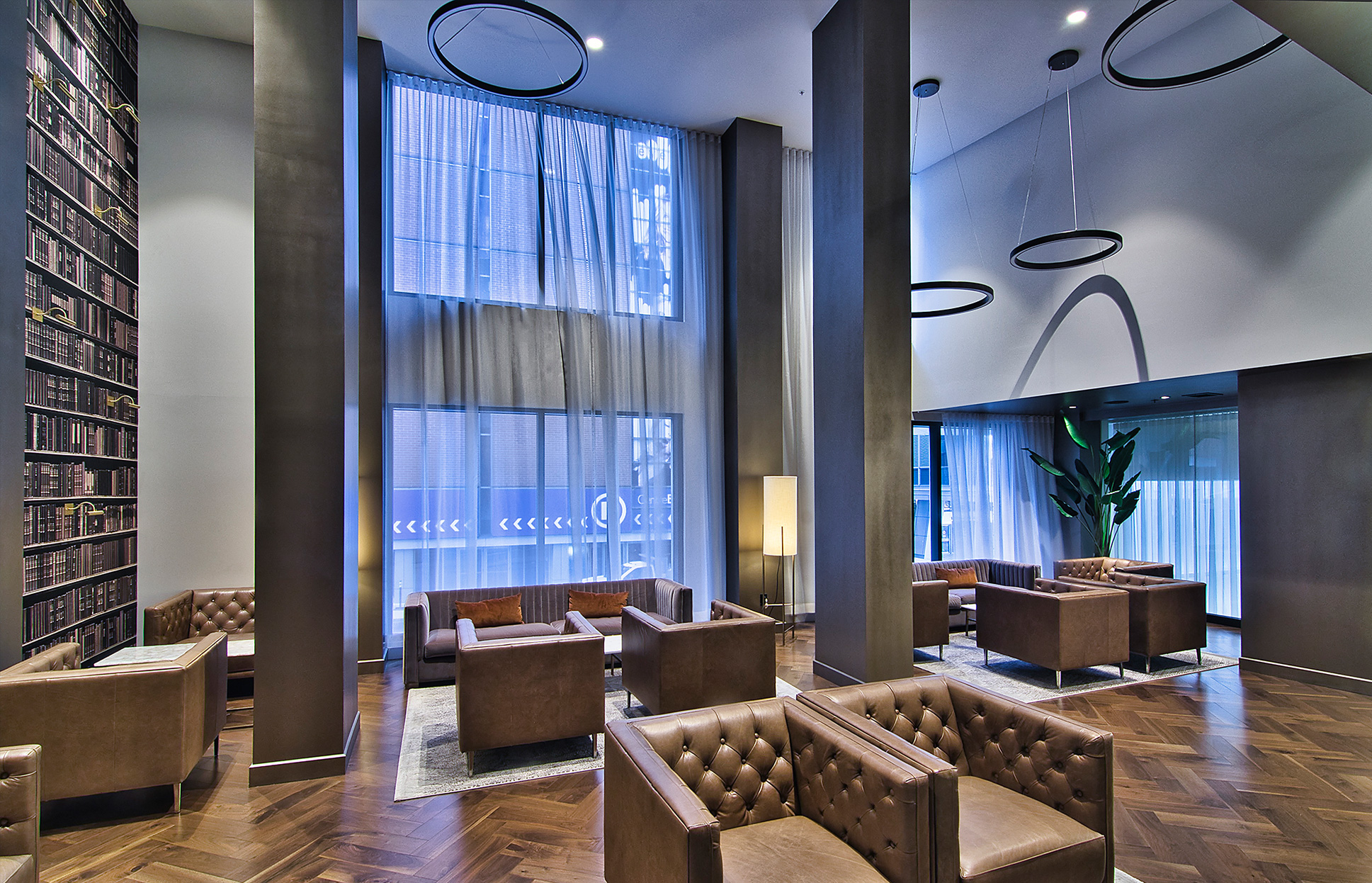 The second phase of the famed residential Tour des Canadiens project, located just south of the first phase, includes a 55 storey, 716,000 sq.ft. tower featuring 590 residential units. The building’s amenity spaces, conceived with Montreal’s downtown energy and vibrancy in mind, include an interior rooftop skylounge, an indoor/outdoor pool, and a wine bar and wine cellar. Additionally, the building sits on 55,000 sq.ft. of land, designed as an urban park, complete with an overhead bridge connection across St. Antoine St., connected into the Bell Centre and the Montreal Underground City.
