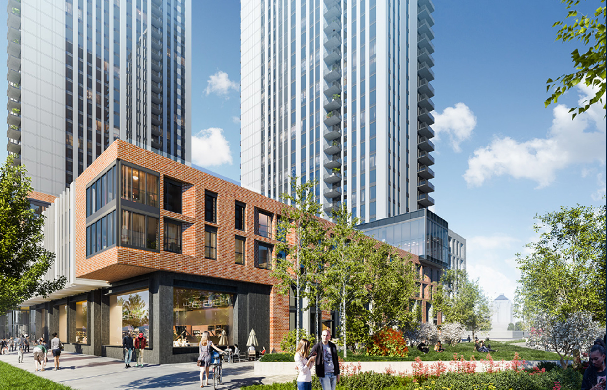 over 2 to 7 storey podiums and bisected by a 22,000 sq.ft. publicly accessible open
