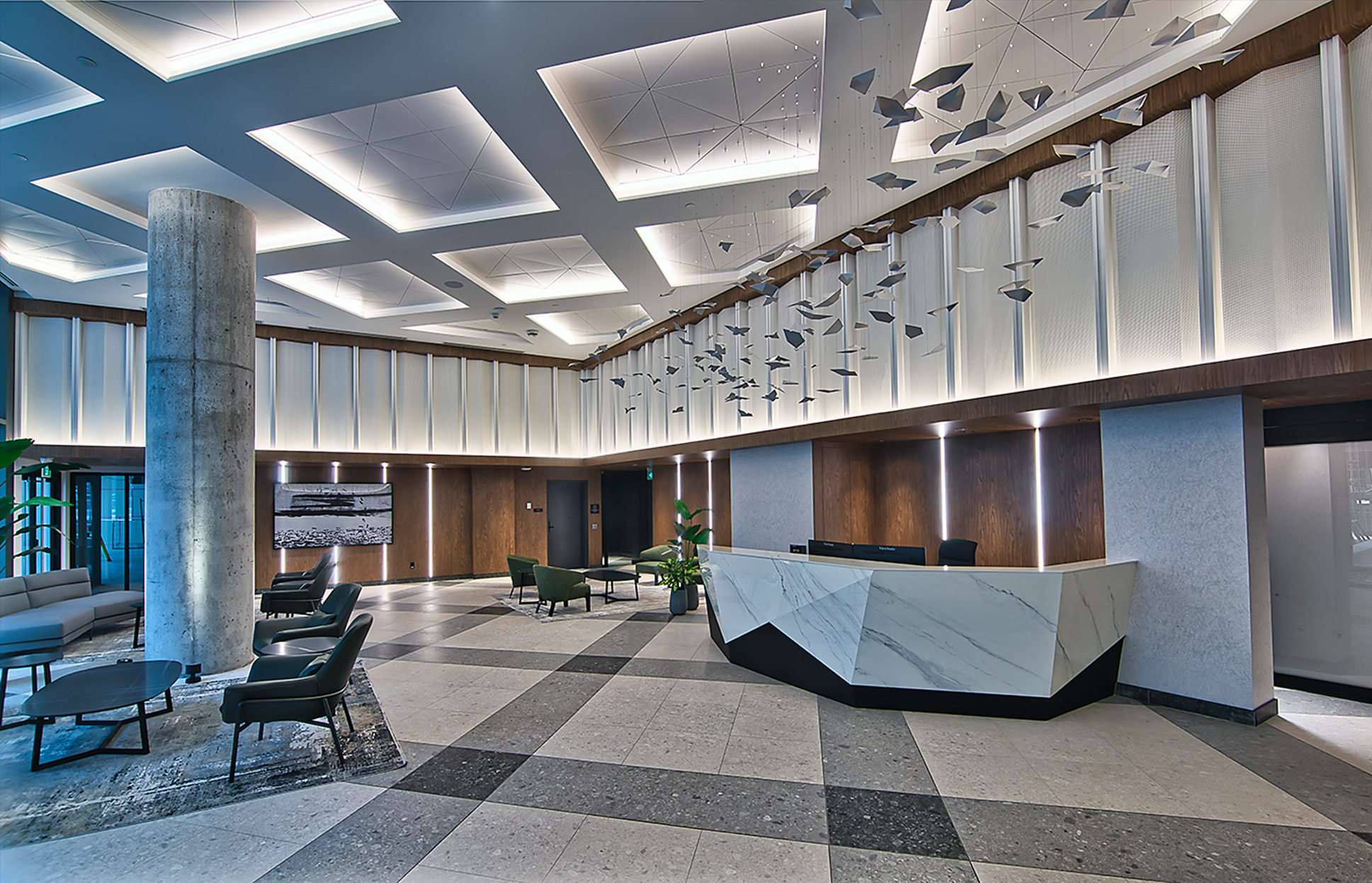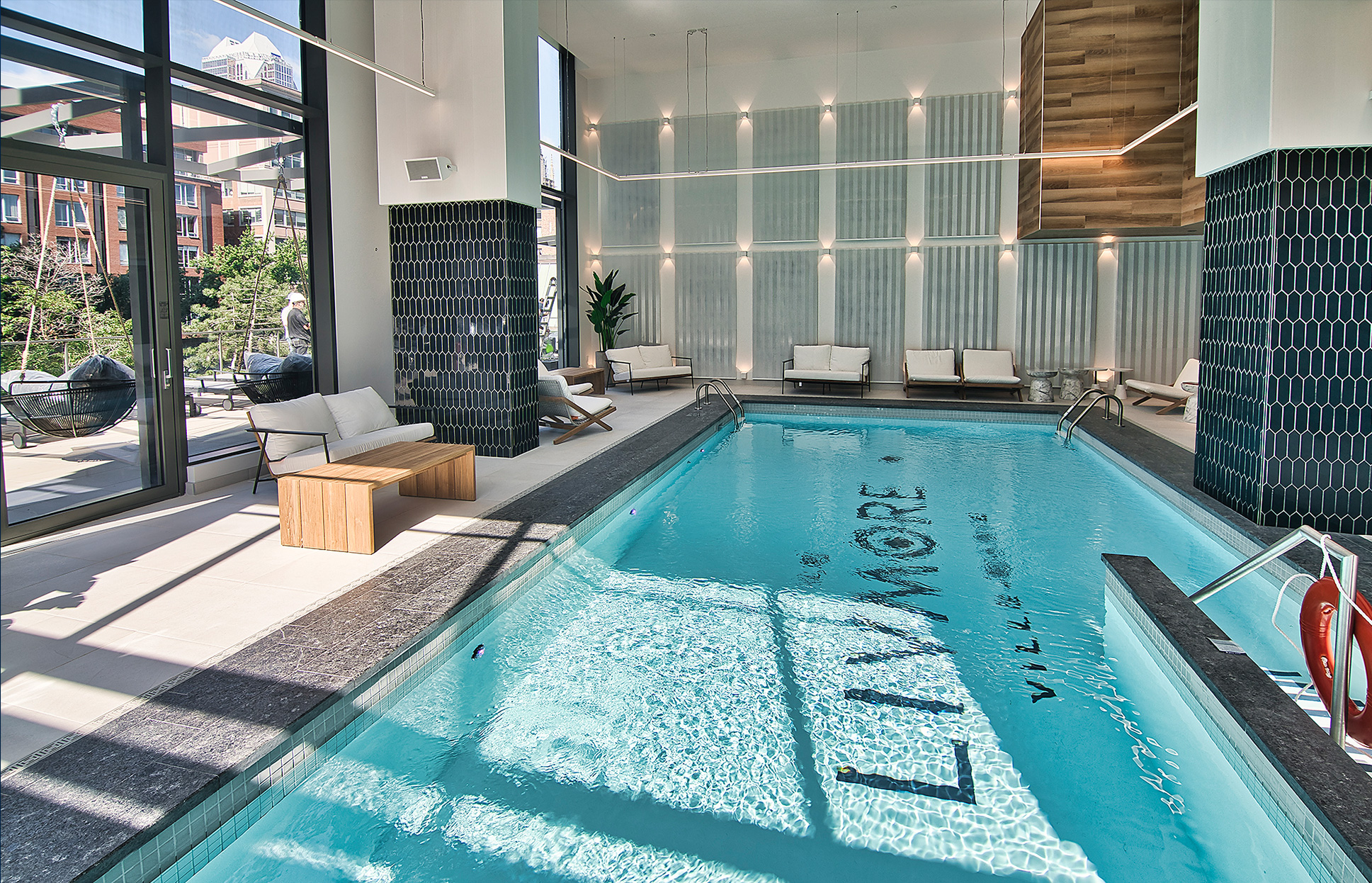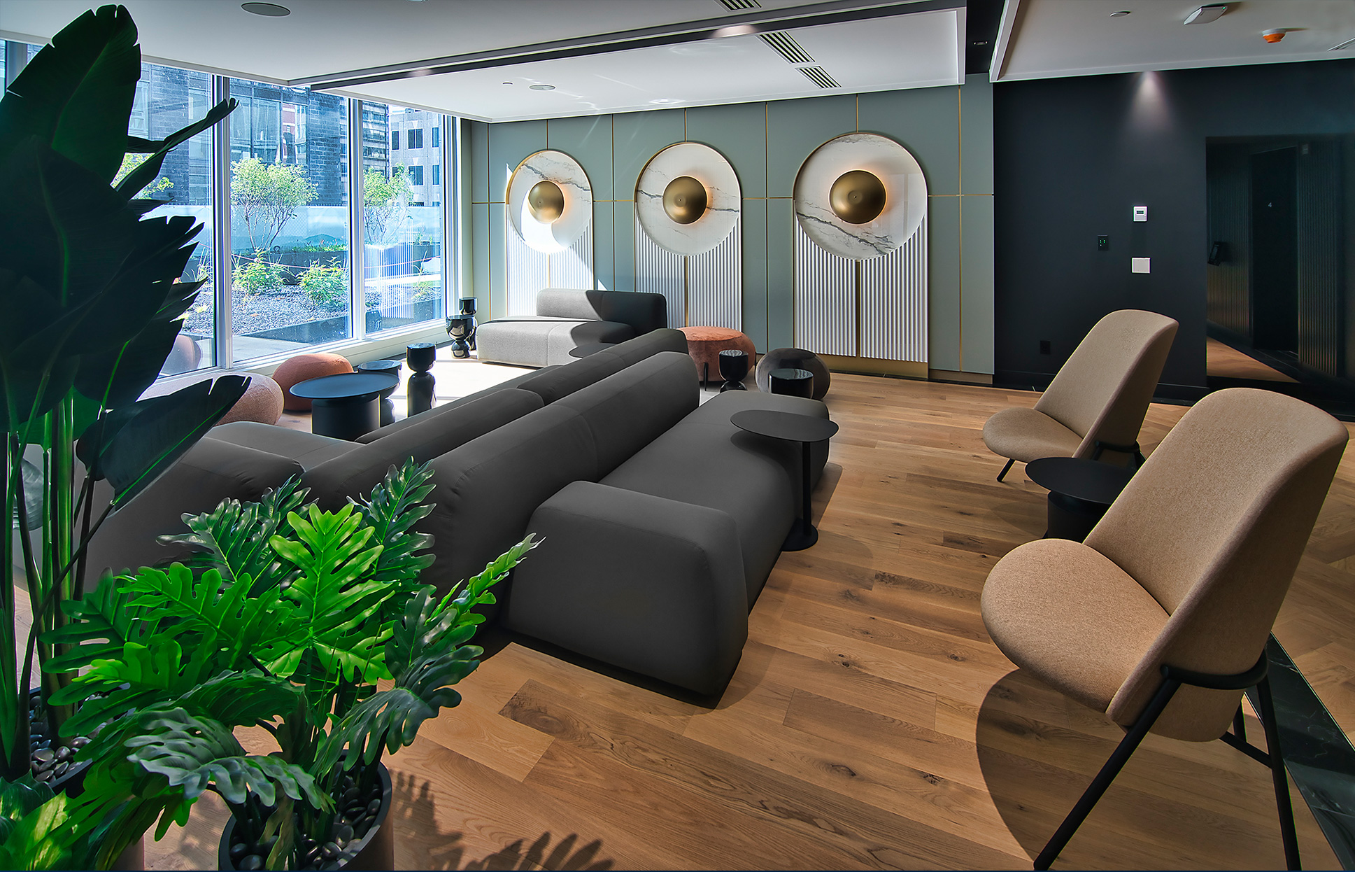 l’atmosphère moderne du centre-ville grâce à son revêtement en verre et son