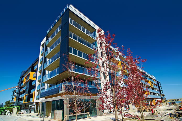 This 7 storey, 164 unit condominium is located on the northern tip of Nun's Island, overlooking the water. Built with innovative energy design in mind, this luxurious apartment building has brick and curtain wall facades, balconies, and european kitchens in every unit. |