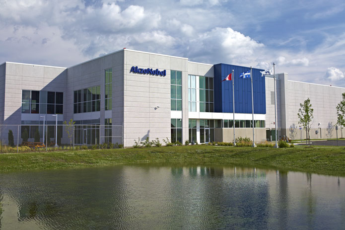 This new 203,000 sf distribution center constructed for Akzo Nobel Sico was built on a fast track basis and completed in less than 5 months. The project was submitted as a candidate for LEED certification and included a TPO roof to reduce solar heat gain and nine solar wall panels used to pre-heat fresh air for the warehouse. Shipping areas included 29 dock-level doors including hydraulic levelers and one drive-in door.