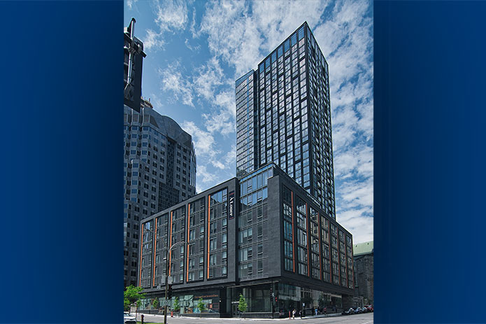 Located in the heart of Montreal's entertainment district in the downtown area, 455 Rene-Levesque will consist of two impressive residential towers, the first composed of 36 floors and the second 45 floors, with a total of 820 rental units. The project will achieve a dual design by being in harmony with one of Montreal's oldest Church to its north, while still matching with the modern downtown atmosphere with its glass design and slightly tilted architecture. The building's surroundings will include the Quartier des Spectacles, two metro stations, and bus and train stations. These two buildings will become important Montreal landmarks, and will be joining the rest of the sky scrapers in the downtown core which have helped shape the beauty and splendor of the city. |