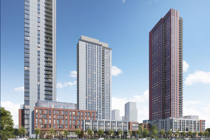 Oxford Properties Group, and designed by Quadrangle Architects, Brimley Road will include approximately 1.2 million sq.ft. in three towers of 32, 41, and 50 storeys. Situated