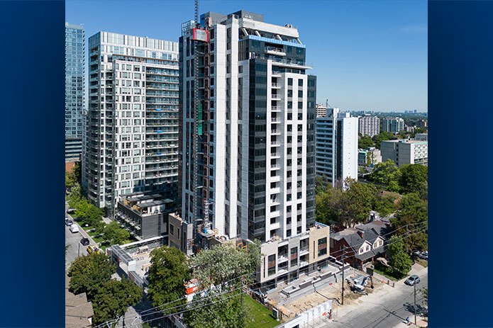 Located on the corner of Redpath Avenue and Soudan Avenue, this 22-storey rental tower in the Mount Pleasant West area of Toronto includes a 3-storey podium, totaling 180 suites. It features state-of-the-art amenities, ranging from a rooftop party room, pool, terraces, a large fourth floor fitness center, guest suite, private dining room, and a business lounge area, all on the ground floor. There are four underground levels of parking that provide a total of 144 spaces and 180 bicycle spaces.