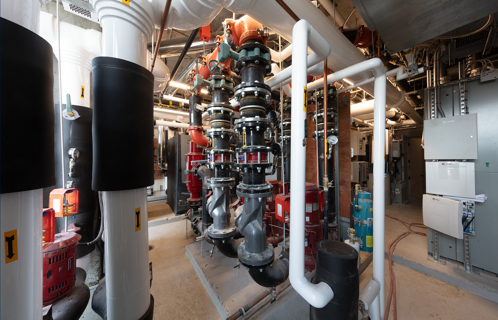 curtain wall, window wall and Petersen Tegl Kolumba handmade brick from Denmark. All of the exposed aluminum on the project including windows, railings, paneling are bronze anodized.