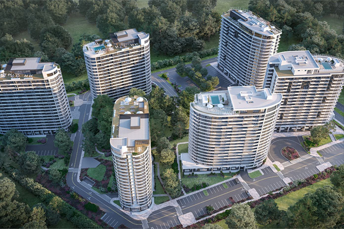 The Seasons project is a continuation and evolution of the Park Place development located in North York where a new destination for family living has been created. This project continues the tradition of extensive amenities as part of the project, in addition to lush green spaces, and a park area, and features 4 floors of underground parking, and a 2 floor podium. The suites include luxurious bathrooms, high-end European appliances and functional kitchens.